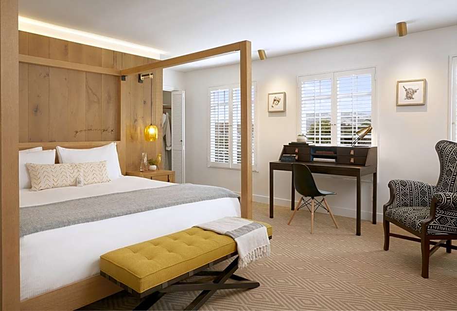 This deluxe king room features views of the courtyard, garden, or surrounding village. The private bathroom provides a shower/tub combination as well as plush bathrobes and boutique toiletries. A small refrigerator with bottled water is provided. A 47-inch flat-screen TV is offered. Free WiFi is included.